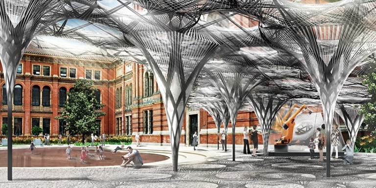 the ‘elytra filament’ for V&A by achim menges will explore the impact of emerging robotic technologies on architectural design, engineering and construction.